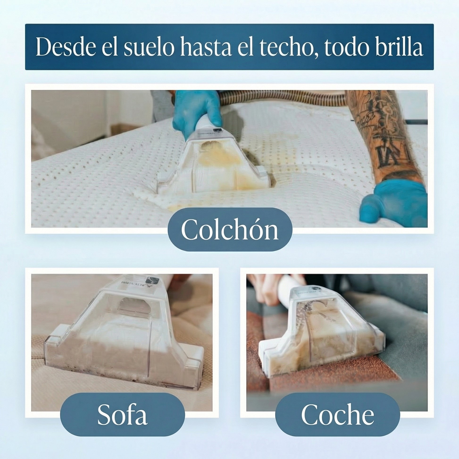 Nuestra máquina viene con dos accesorios, uno pequeño y otro grande, para adaptarse a todas tus necesidades. Desde una limpieza amplia hasta un detallado preciso, tenemos la herramienta adecuada para cada trabajo. Además, cuenta con 2 depósitos (uno para agua limpia y otro para agua sucia).